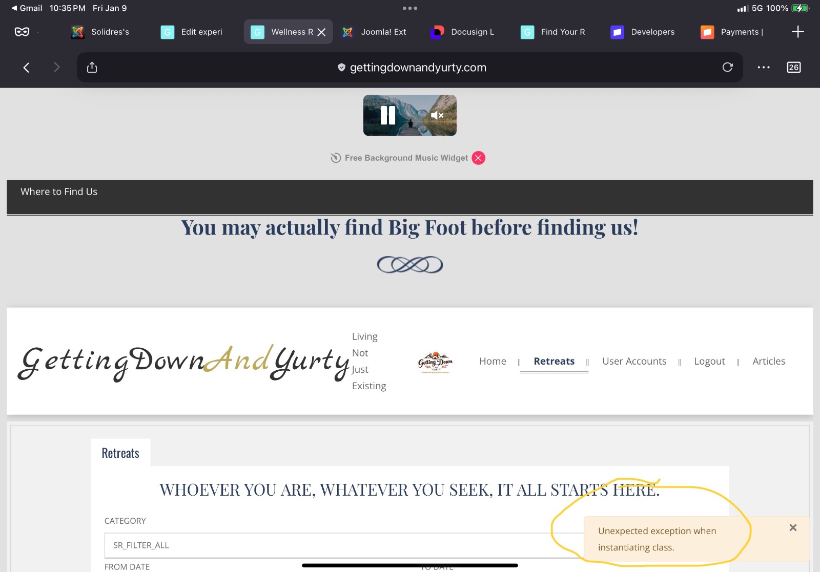 The error “Unexpected exception when initiating class” pops up on the refreshed page. The reservation gets made for the experience selected but shows unpaid and the charge doesnt show on customer statements either