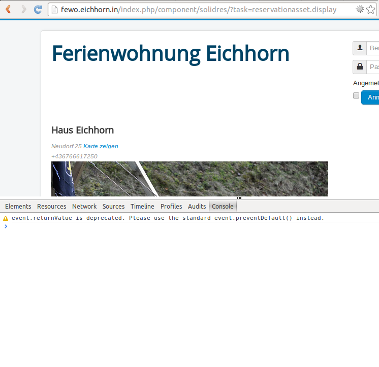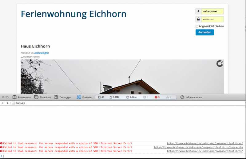 console reports 3 error 500 on solidres front-page: