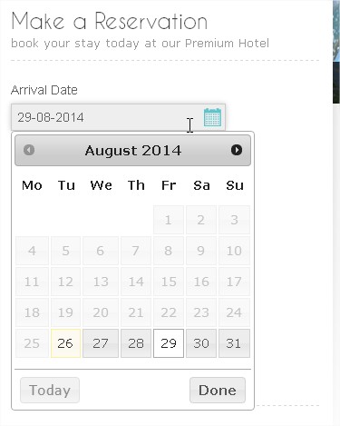How I can make the datapicker (Arrival date) overlays the departure date instead to move down it? is it exists any option in the solidres component?