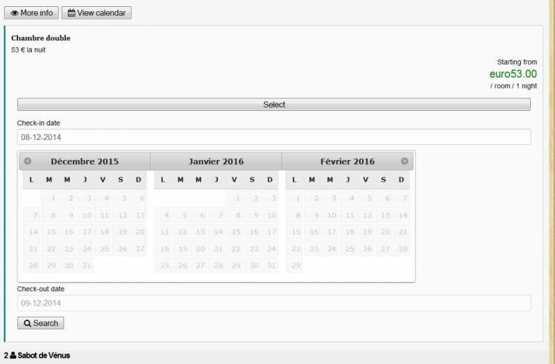 But, when I want to choose the check-in date, the calendar which appears is inactive and shows « December 2015" (seen screen 2).