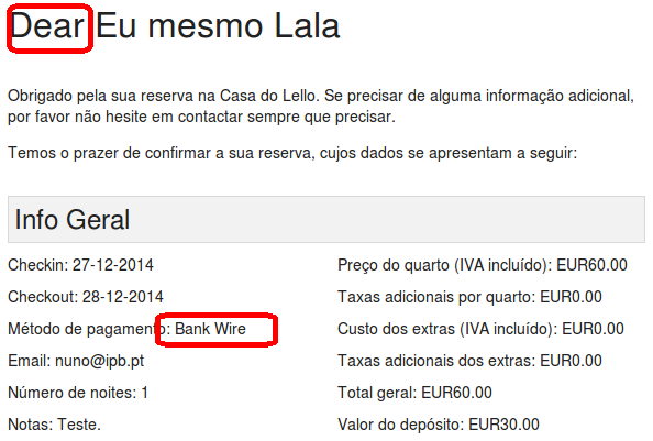 Despite the correct translation, in the email sent to confirm a booking these strings remains in english ( )