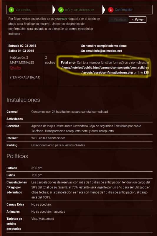 Fatal error: Call to a member function format() on a non-object in /home/hotelesj/public_html/carmen/components/com_solidres/layouts/asset/confirmationform.php on line 135