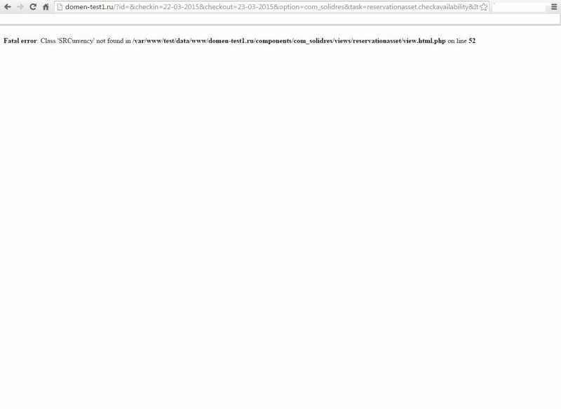 Fatal error: Class 'SRCurrency' not found in /system path/components/com_solidres/views/reservationasset/view.html.php on line 52