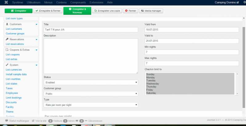 For the moment I started by defining the rates per night per property for a minimum of 7 nights.