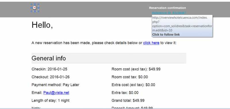 This is the link in the email reservation to admin and user: