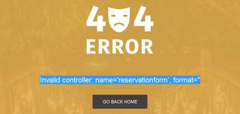 It leads to a 404 page: Invalid controller: name='reservationform', format=''
