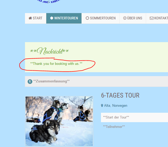 And also the Message for booking... see attached