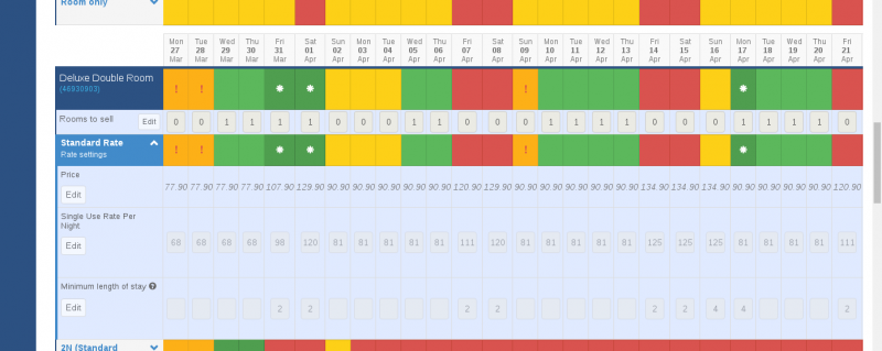 I have asked about how to restrict 2 nights minimum stay for Friday or Saturday. I was offered a workaround by creating 2 tariffs. First tariff is 1 night minimum restrict check-in on Sunday to Thursday. Second tariff is 2 nights minimum restrict check-in on Friday and Saturday.