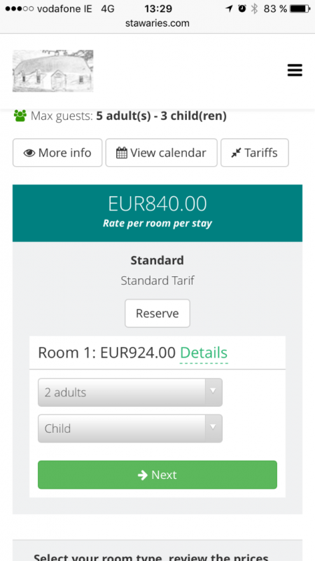 The price per room is not calculating properly. When selecting 2 adult option, the overall price shown is increased by 10%. Clicking on details, the shown prices there are correct.