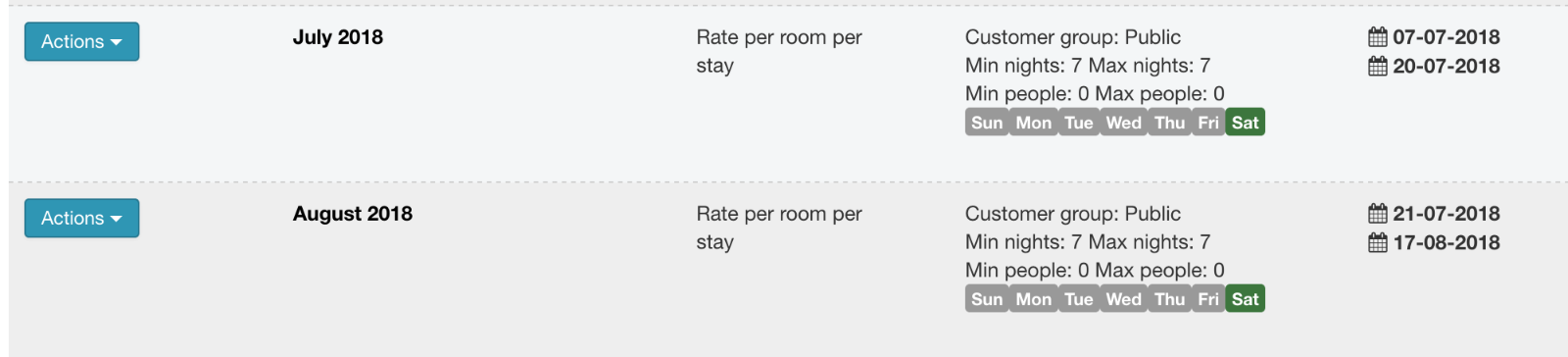 So I make 2 tariffs, one valid until 20 July and one valid from 21 July, both with minimum and maximum stay of 7 nights and arrival only on Saturday.