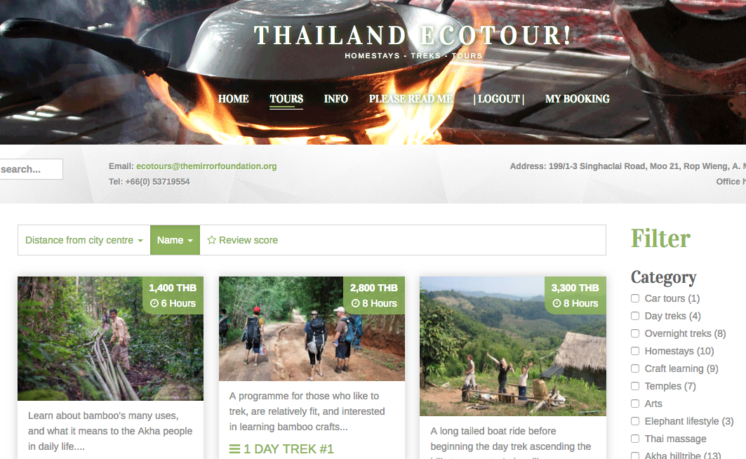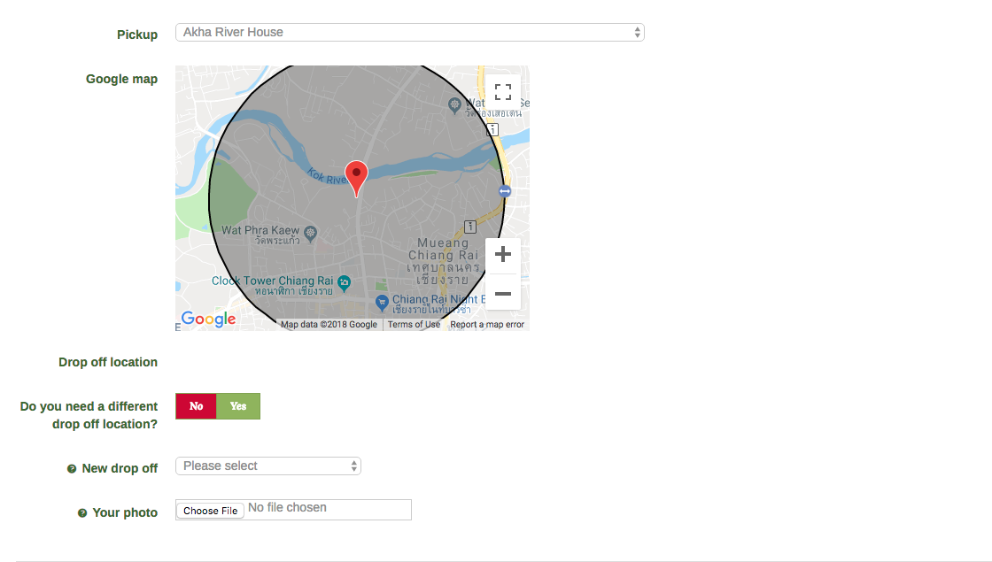- a pickup table (lists hotels, guesthouses, and other pickup points in Chiang Rai)