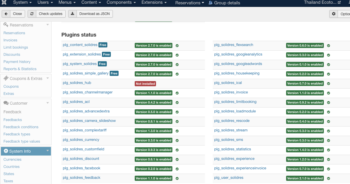 If you haven't done so already, go to the system info link in Solidres component, and you will see all the plugins, modules and other information. It will show you which ones need updating - Most of them need you to subscribe to a plan... do you have a subscription?