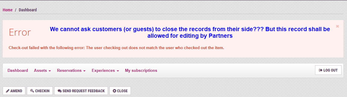 when the form of my reservations is open by guest using tracking system, an error message will through when the partner tries to open it at the same time? Shouldn't the guest be given a read only access? see the image attached.