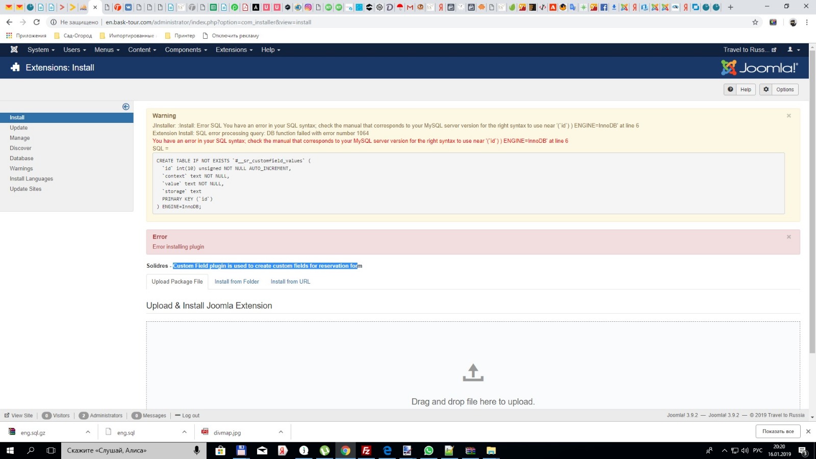 Problem when installing plg_solidres_customfield_v0.9.3.zip What are the solutions? See screenshot, please.
