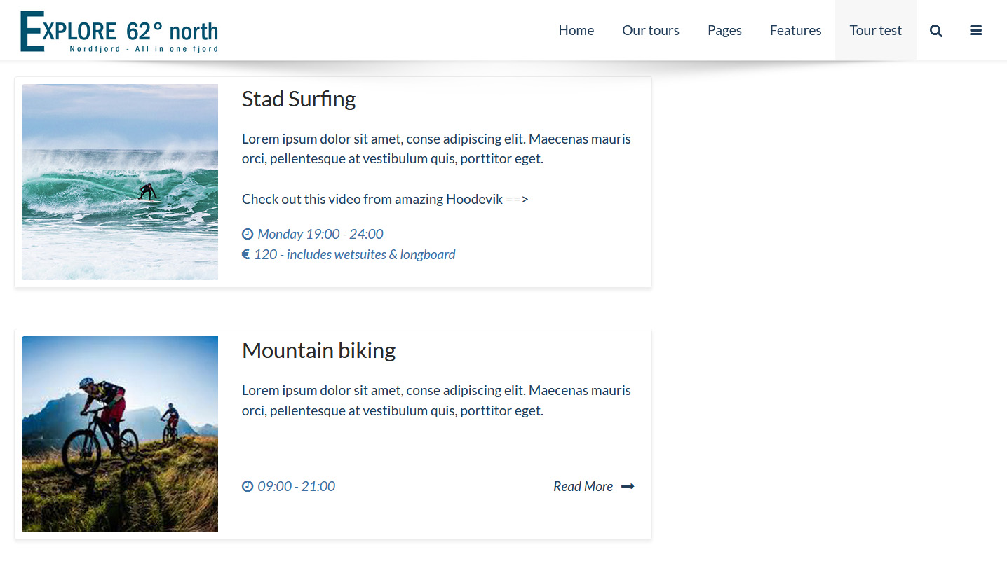 I am building a booking site with 1 main tour (sailboat) with a lot of activities as extra service/choise to do every day, on a 6 day tour.